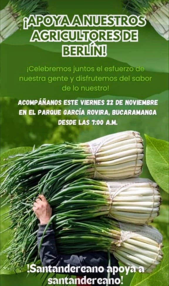 Desde la 1:00 de la madrugada de éste viernes 22 de noviembre, los cultivadores de Berlín, Tona, bajarán del páramo con sus camiones a Bucaramanga para ofrecer ruedas de cebolla junca de 33 kilos a $30.000 y $20.000.