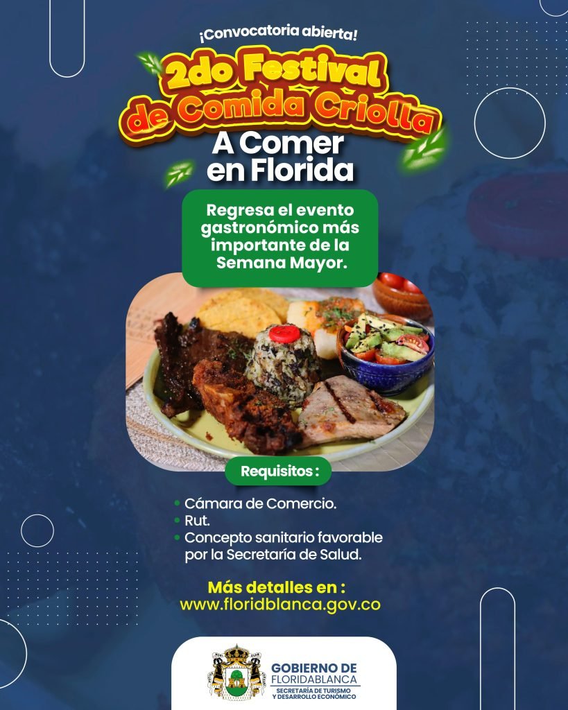 Del 14 al 20 de abril, regresa este evento liderado por la Secretaría de Turismo y Desarrollo Económico del Gobierno de Floridablanca, para fortalecer a los empresarios del sector gastronómico, resaltar los sabores tradicionales e impulsar el turismo en la ciudad durante la Semana Mayor.