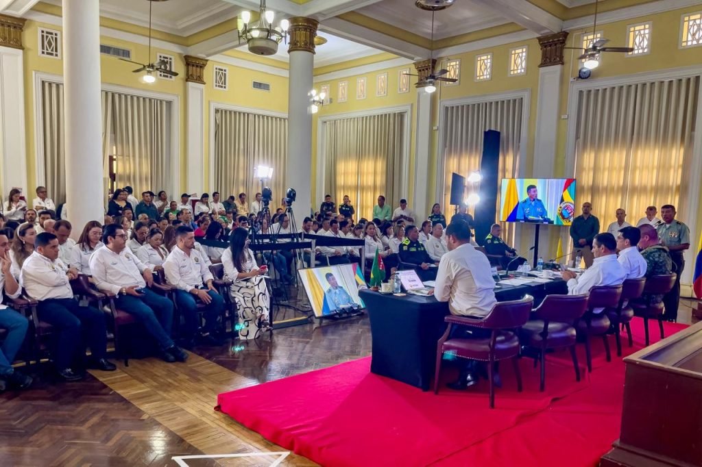El balance dado a conocer en audiencia pública presencial con los funcionarios de la Gobernación y de manera virtual a los santandereanos estuvo acompañado por el secretario del Interior, Óscar Hernández; el director de Seguridad y Convivencia Ciudadana, Douglas Arenas; el secretario de Planeación, Ignacio Nieto; el comandante de la Quinta Brigada, coronel Oswaldo Forero; y el general José James Roa, comandante de la Región 5 de Policía.