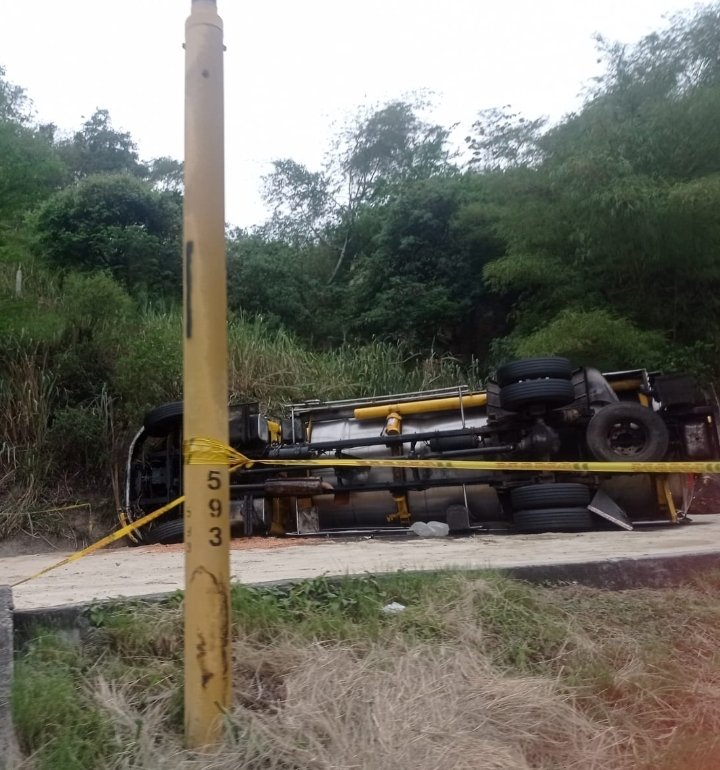 De acuerdo con información entregada por algunos testigos, el vehículo que transportaba gasolina perdió el control en una de las curvas de la estrecha vía y terminó volcado.