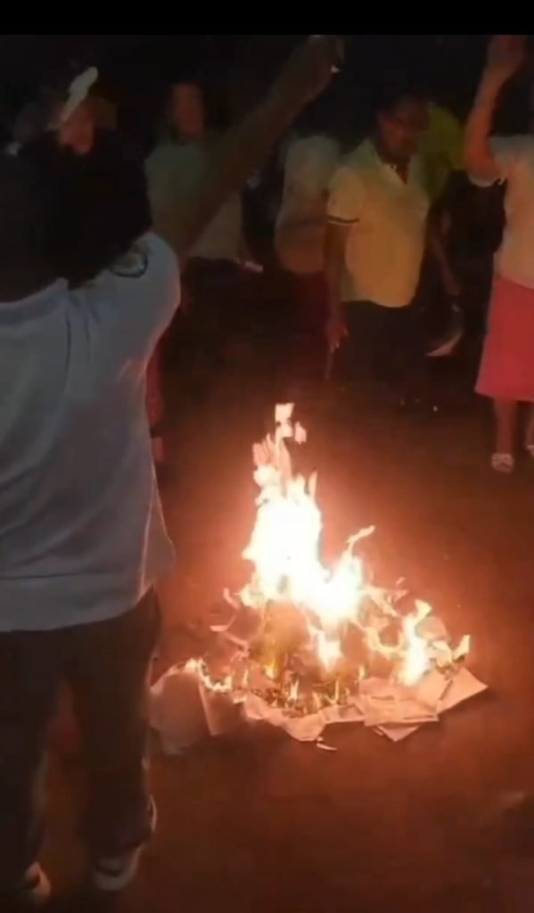 En medio de una protesta , ciudadanos del barrio La Cumbre, quemaron sus recibos, dicen estar » hasta la coronilla» de tantas alzas inexplicables.
