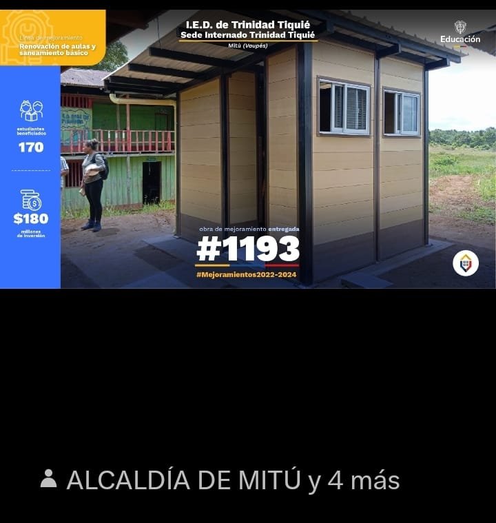 Asimismo se transformaron espacios de vivienda y aprendizaje de 170 estudiantes indígenas de las etnias Tuyuca y Guananos, en Mitú mientras que en la ribera del río Vaupés, donde está ubicada la residencia escolar de la Institución Educativa de Trinidad Tiquié, «construimos nuevos baños e intervinimos el sistema de saneamiento básico para el tratamiento de aguas residuales» preciso la FFIE.🏡🚧