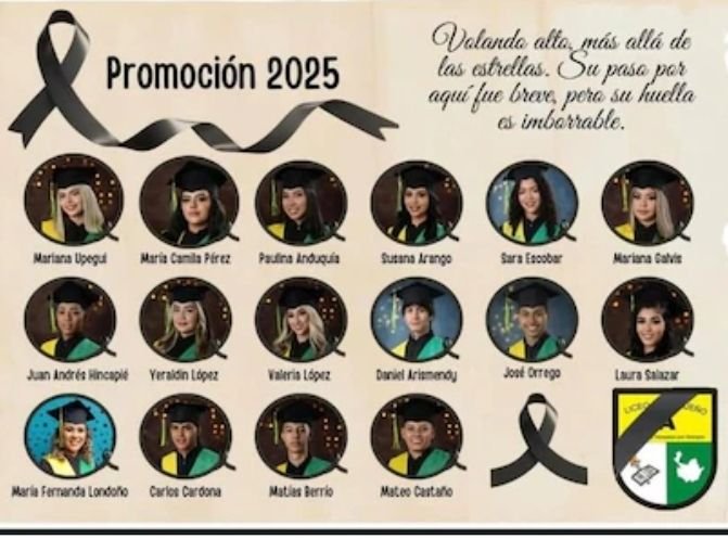 La institución educativa confirmó la identidad de las víctimas mortales a través de una publicación, con el siguiente listado de los jóvenes: “Hoy compartimos este mosaico en memoria de nuestros egresados Promoción 2025, cuyas vidas se apagaron trágicamente por el accidente”.