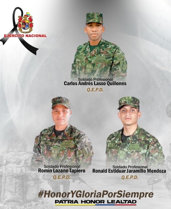 …..Su sacrificio jamás será olvidado» dijo el comandante del Ejército Nacional, General Luis Emilio Cardozo Santamaría a través de su cuenta oficial X.